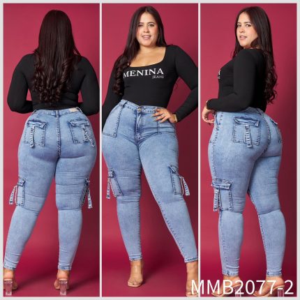 Jeans MENINA Pitillo Celeste Cargo 2077-2